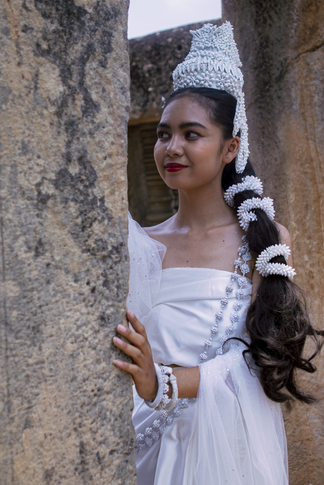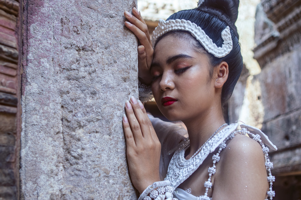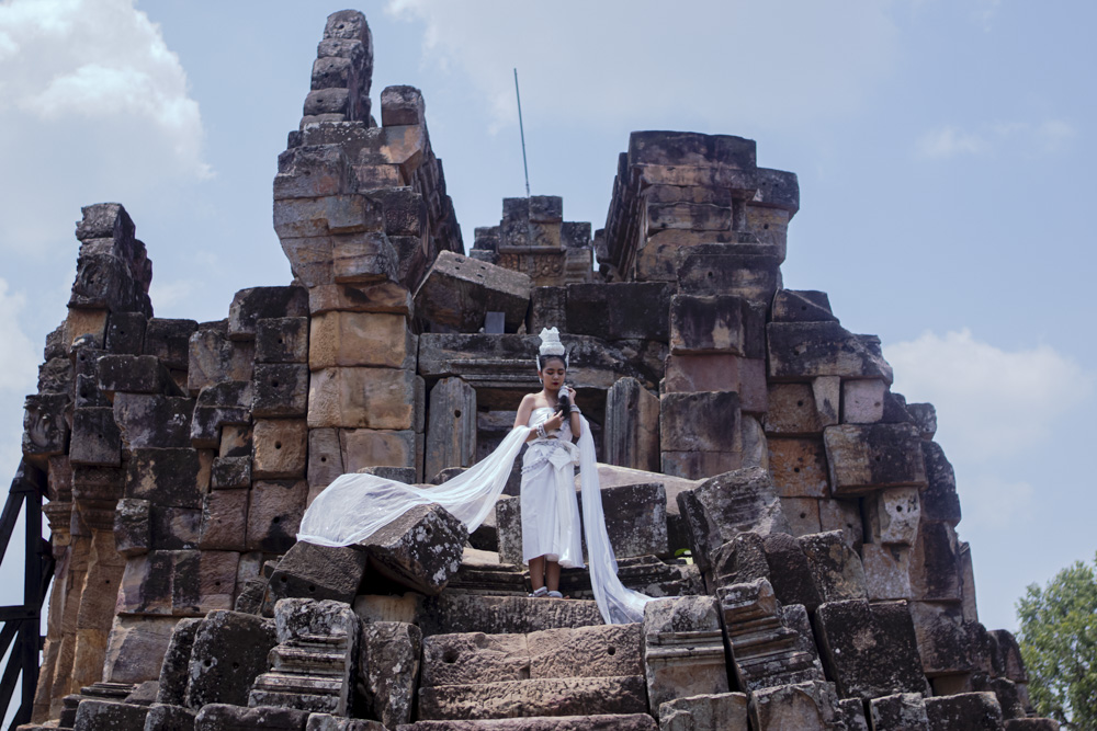 Ces photos mettent en lumière l'élégance des tenues traditionnelles khmères dans un cadre historique : le temple d'Ek Phnom. Capturer l’héritage culturel du Cambodge à travers l'objectif, c'est montrer son importance encore aujourd’hui. La douceur des gestes et l’élégance de ses vêtements créent un lien entre le passé et le présent.